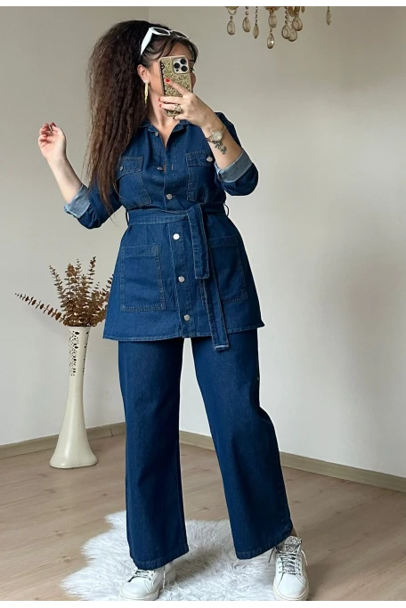 Leopar Karakter Baskılı Kot Detaylı Takım
