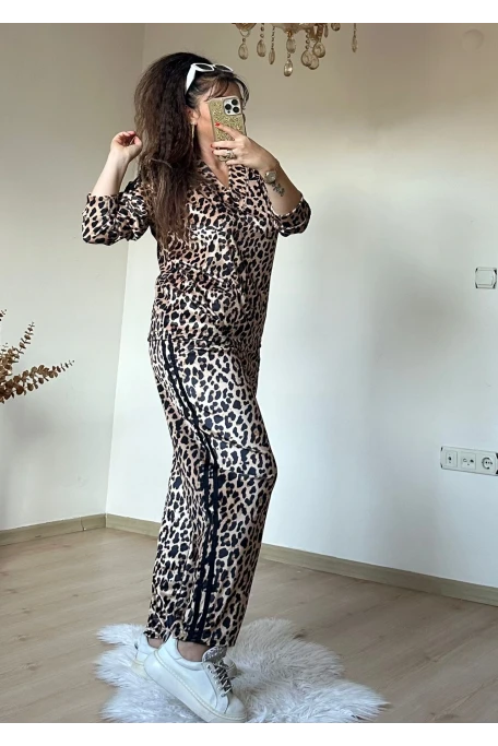 V Yaka Kadıfe Leopar Takım Büyük Beden