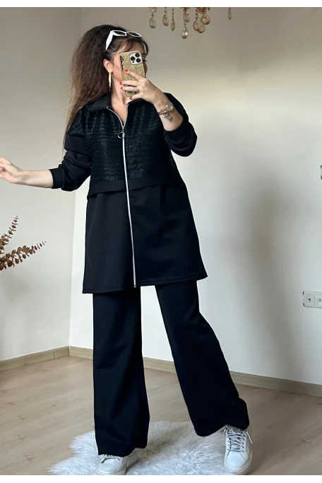 Fermuarlı Üst Sımlı Takım Sıyah