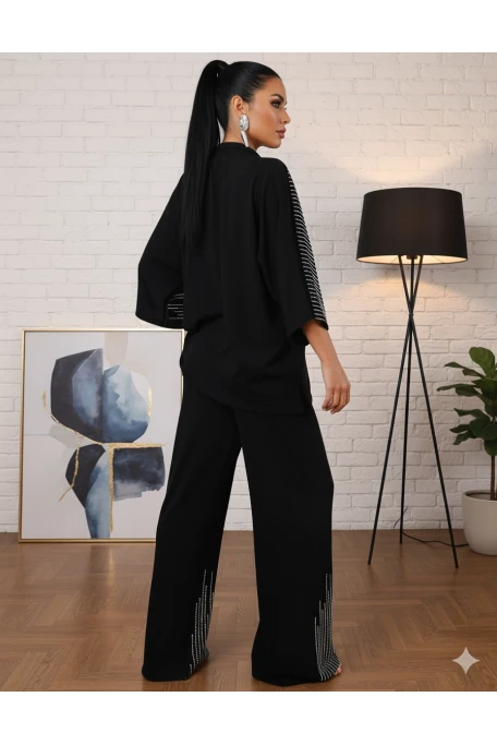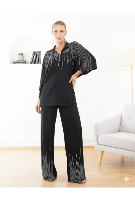 Boncuk İslemelı Triko Takım Siyah