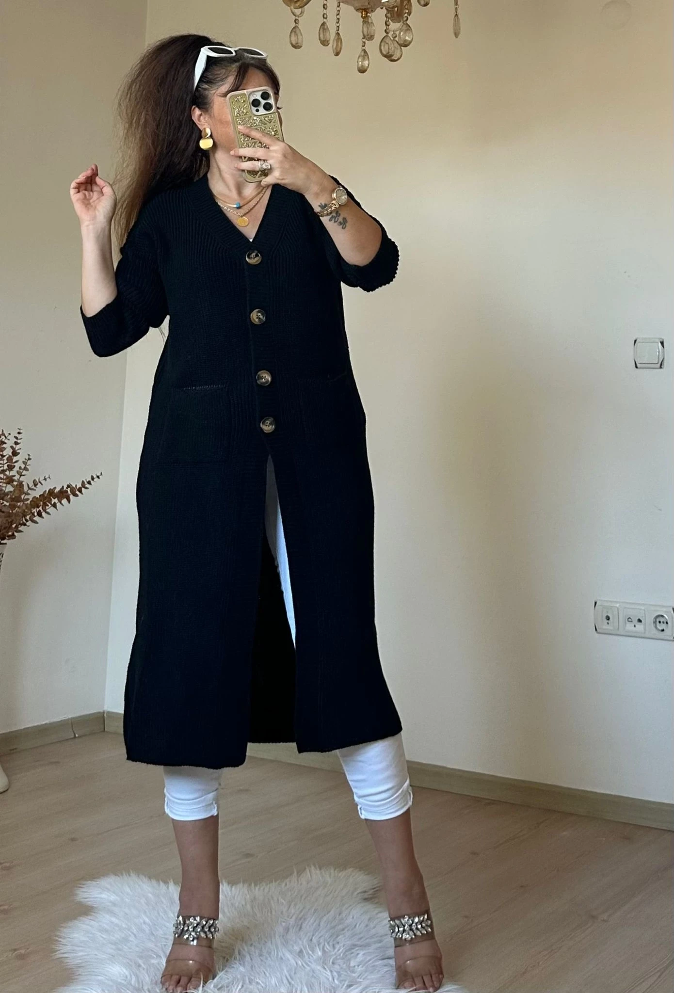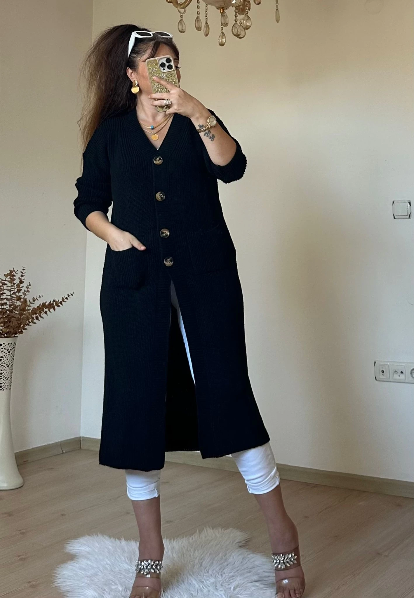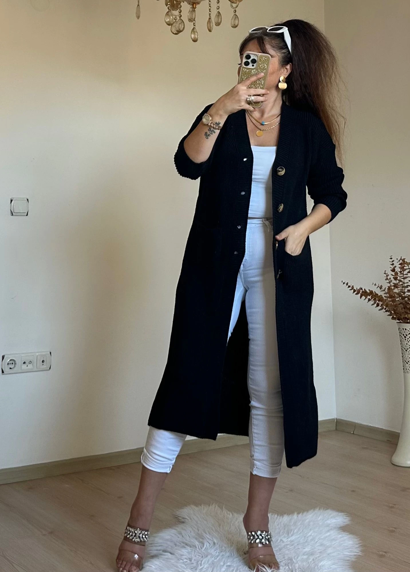 Uzun Kol Yan Çıtçıtlı Siyah Takım