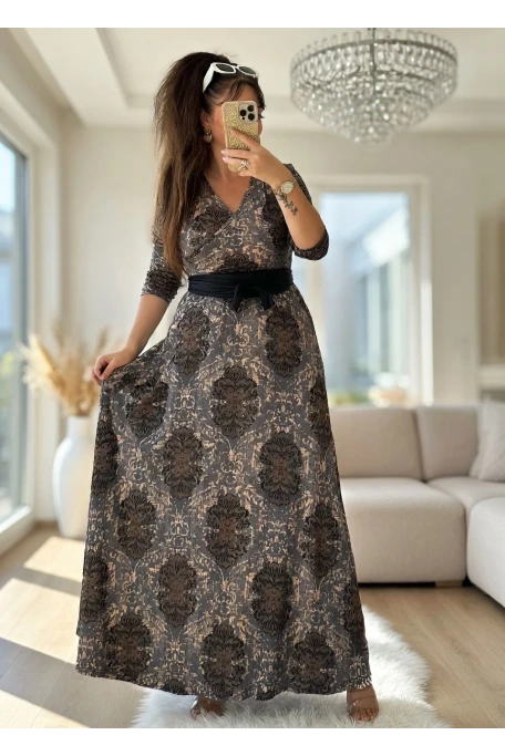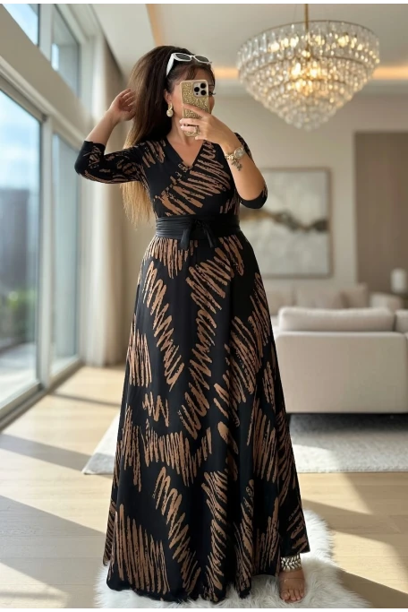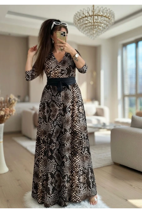 Tam boy Süet Kahve Zikzak Desen Elbise
