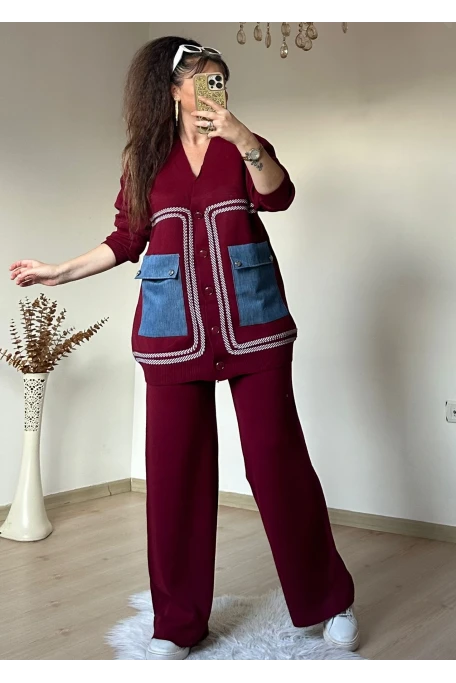 Cep Kot Detaylı Takım Bordo