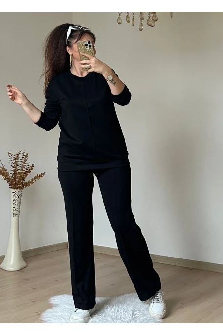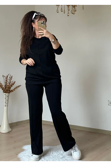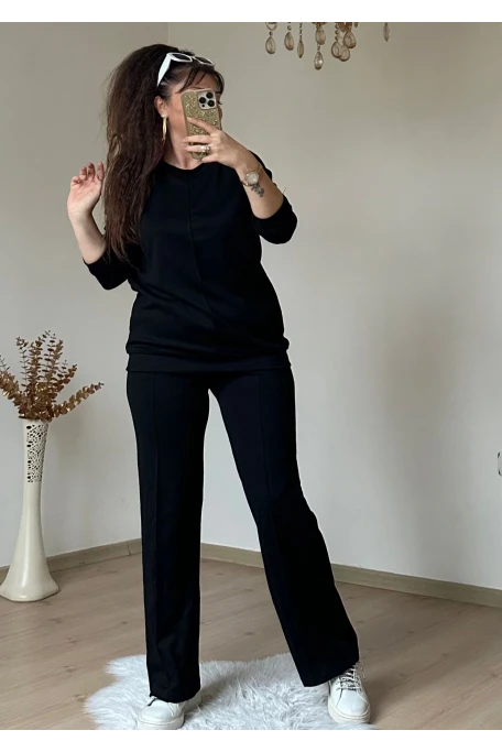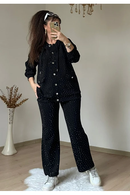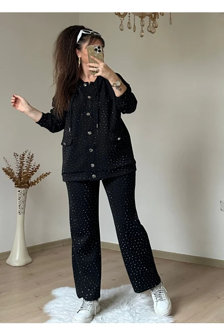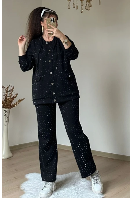 Gümüş Düğmelı Full Taşlı Takım Siyah