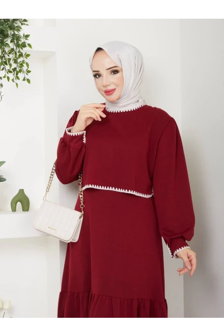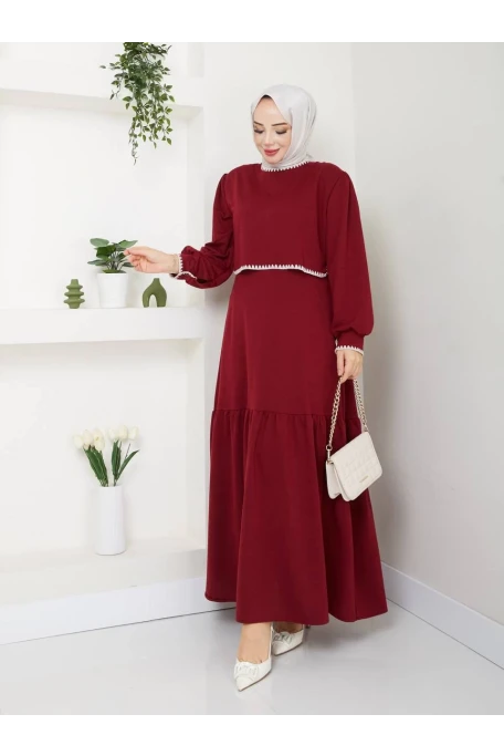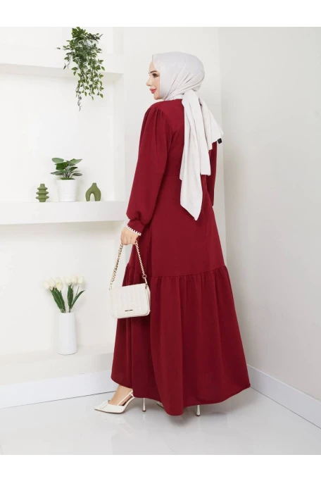 Etek Fırfırlı Elbise Bordo