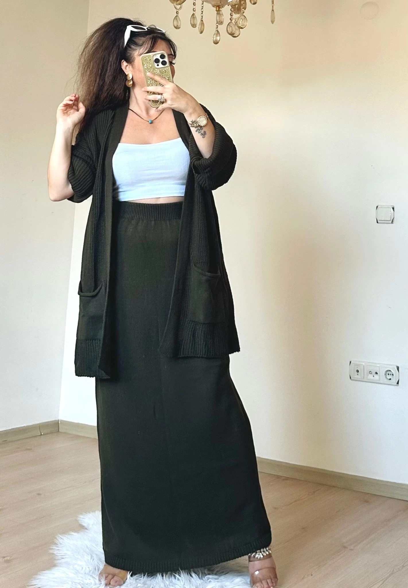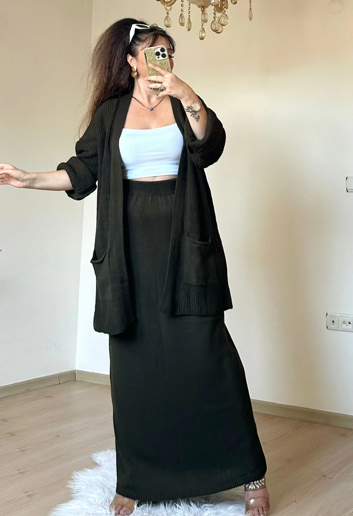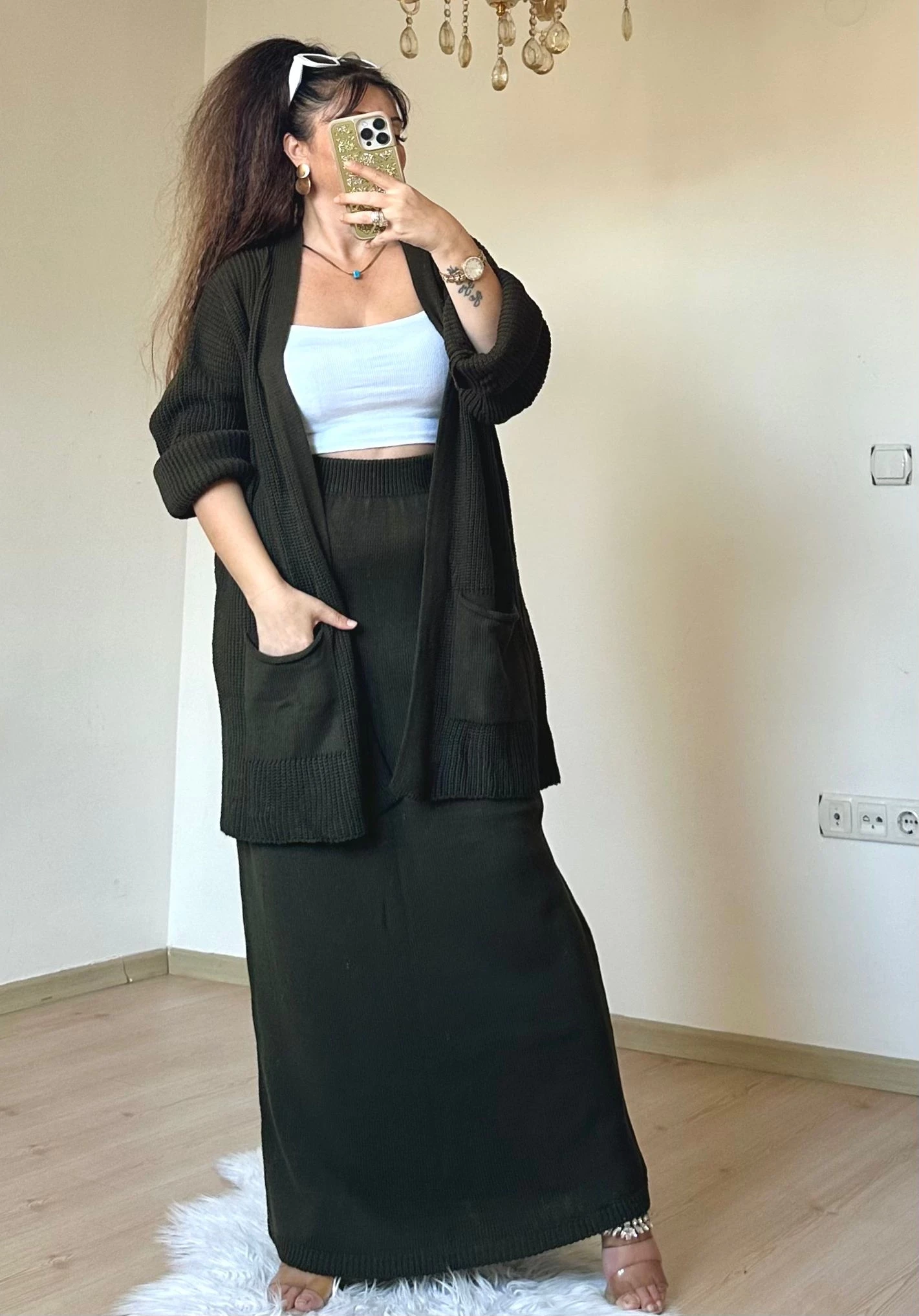 Uzun Kol Yan Çıtçıtlı Haki Takım