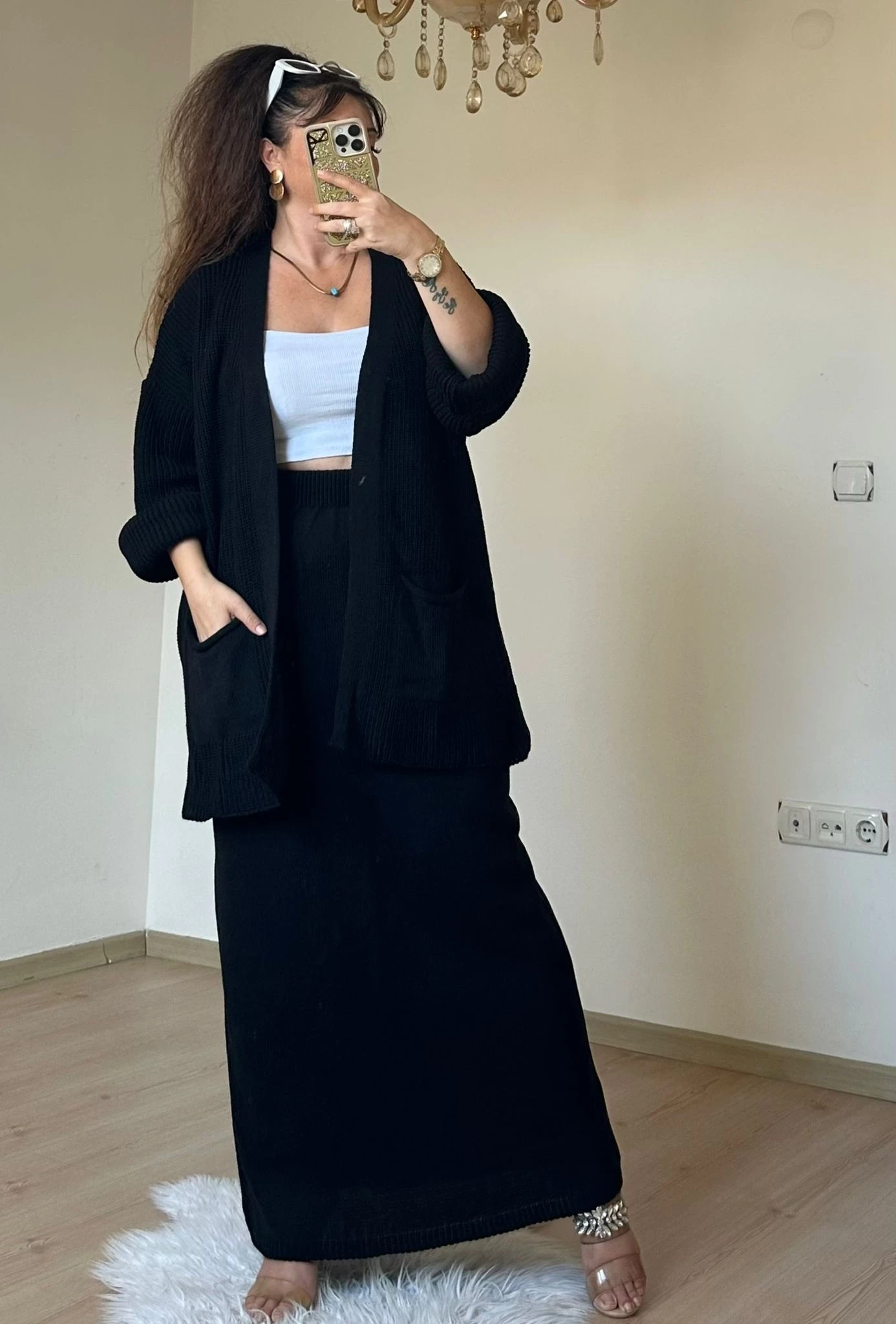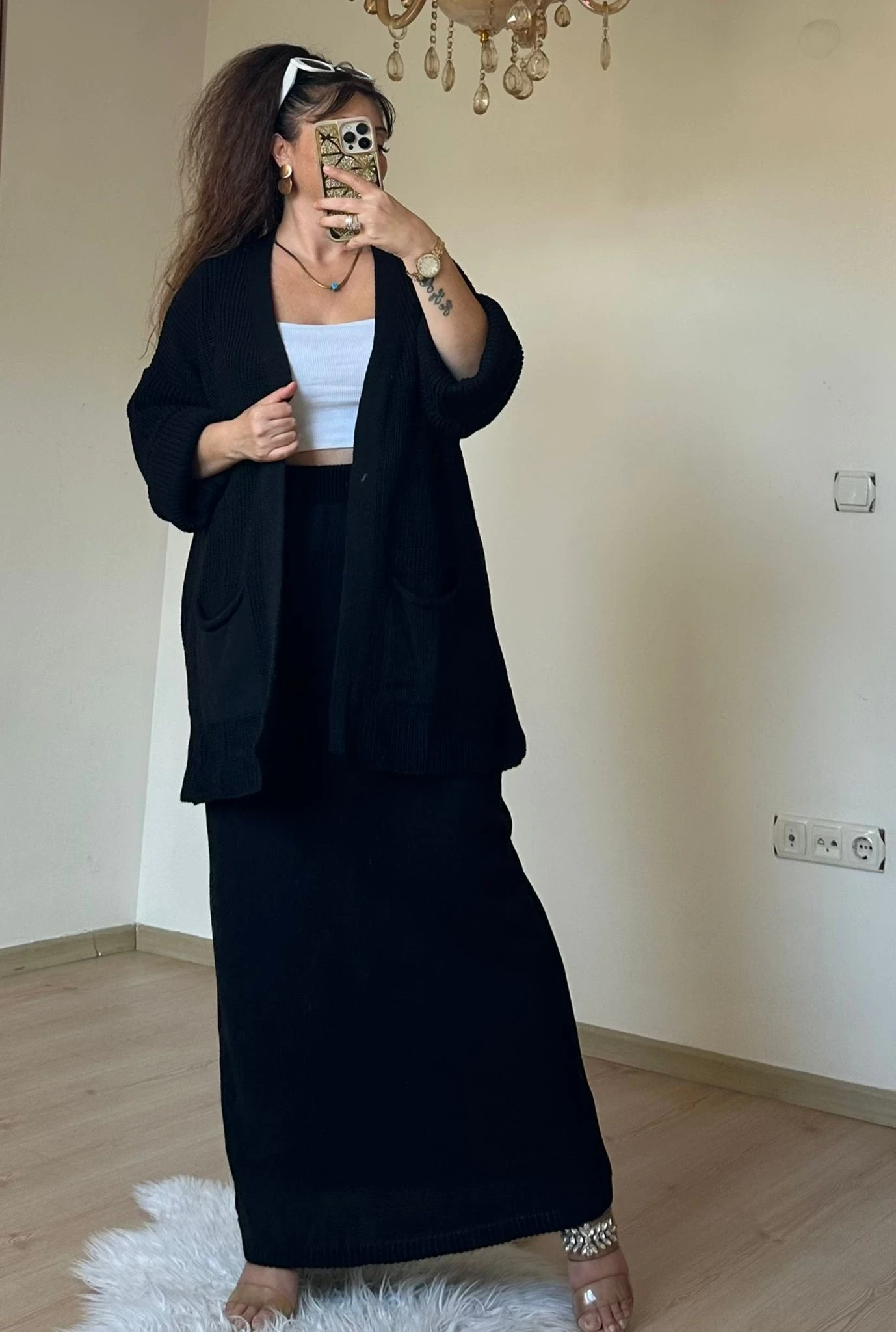 Etek Hırka Trıko Takım Sıyah