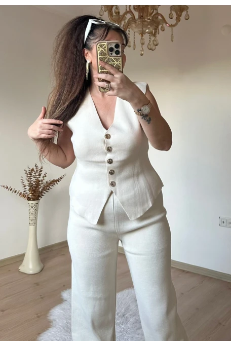 Dik Yaka Fermuarlı Yelekli Takım Kahve