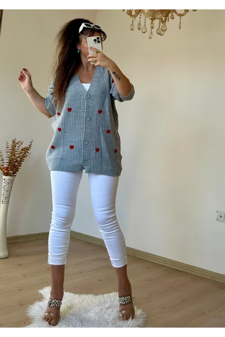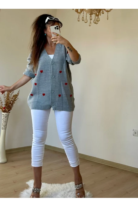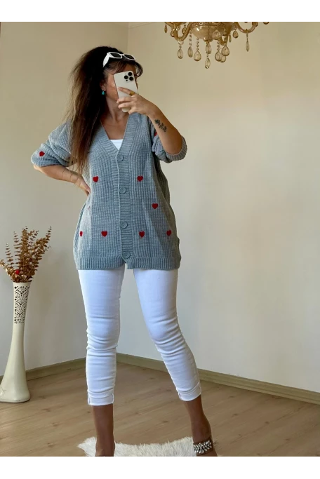 Kalplı Hırka Gri