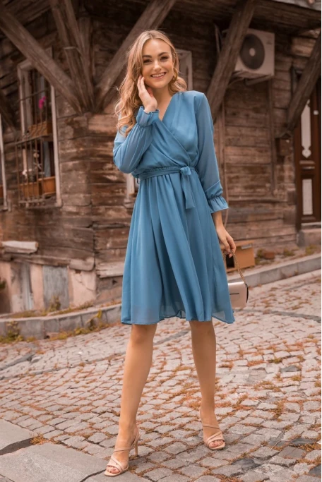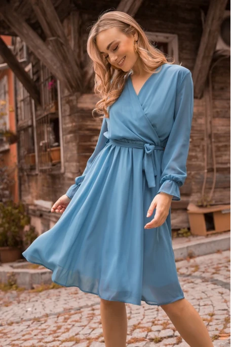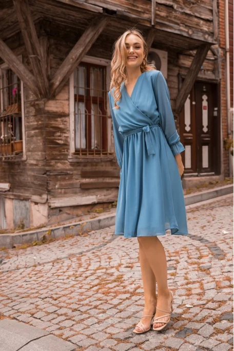 Kruvaze Şifon Kuşaklı ElbiseNumune Ürün Uzunluk: 105 cm (1-3 cm arası değişkenlik gösterebilir.)Numune Ürün Kol Uzunluk: 60 cm (1-3 cm arası değişkenlik gösterebilir.)Kumaş Türü: ŞifonModel ÖlçüleriBoy: 1.73 cmGöğüs: 83 cmBel: 61 cmBasen: 90 cmKilo: 53 kgModel Üst: S/36 Alt: S/36/27 beden giyiyorYıkama TalimatıÜrünün iç etiket bölümünde gerekli yıkama talimatı yer almaktadır. Yıkama talimatları ve sembolleri ile ilgili gerekli bilgiyi buradan alabilirsiniz.
