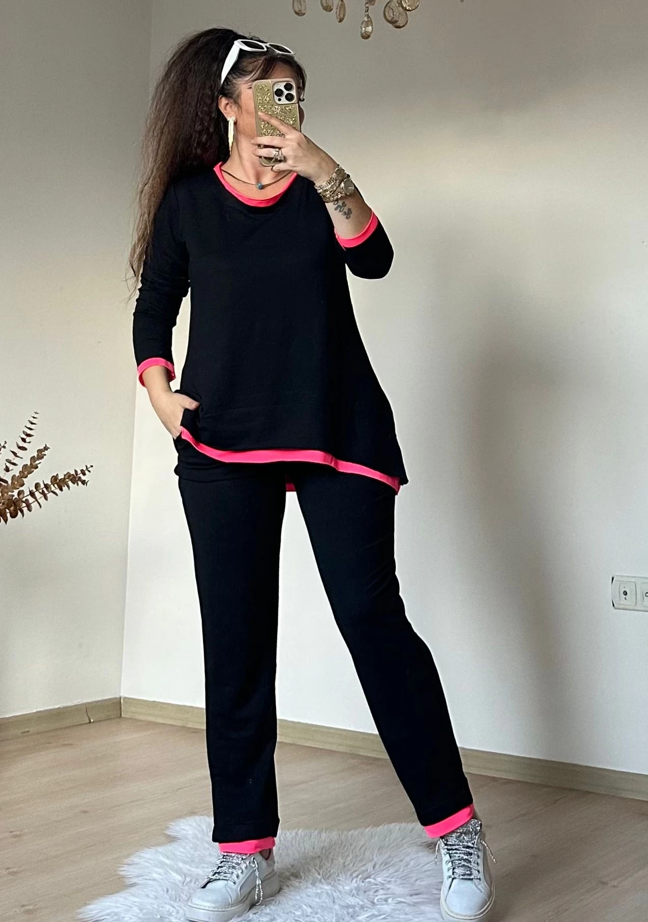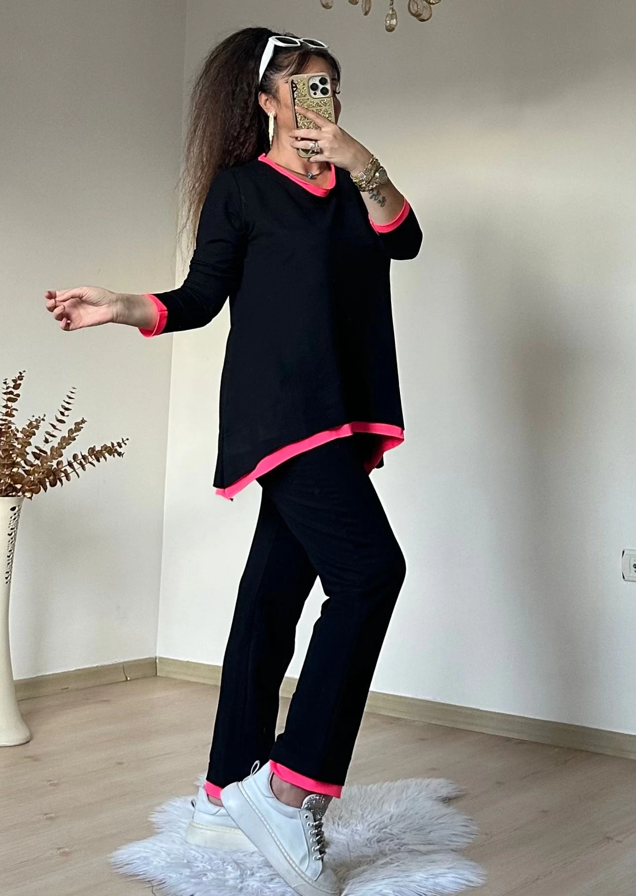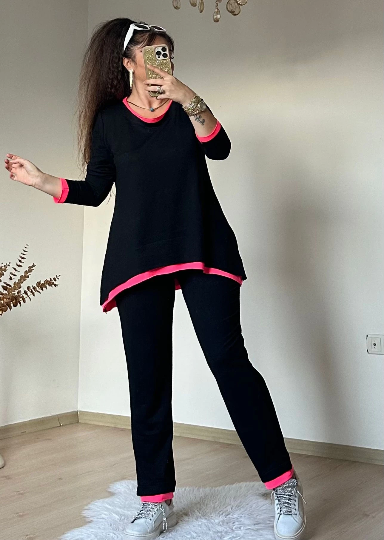 Uzun Kol Yan Çıtçıtlı Siyah Takım