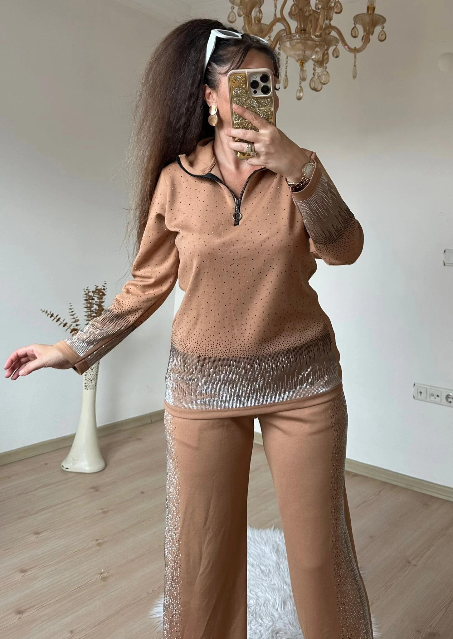 Uzun Kol Yan Çıtçıtlı Haki Takım