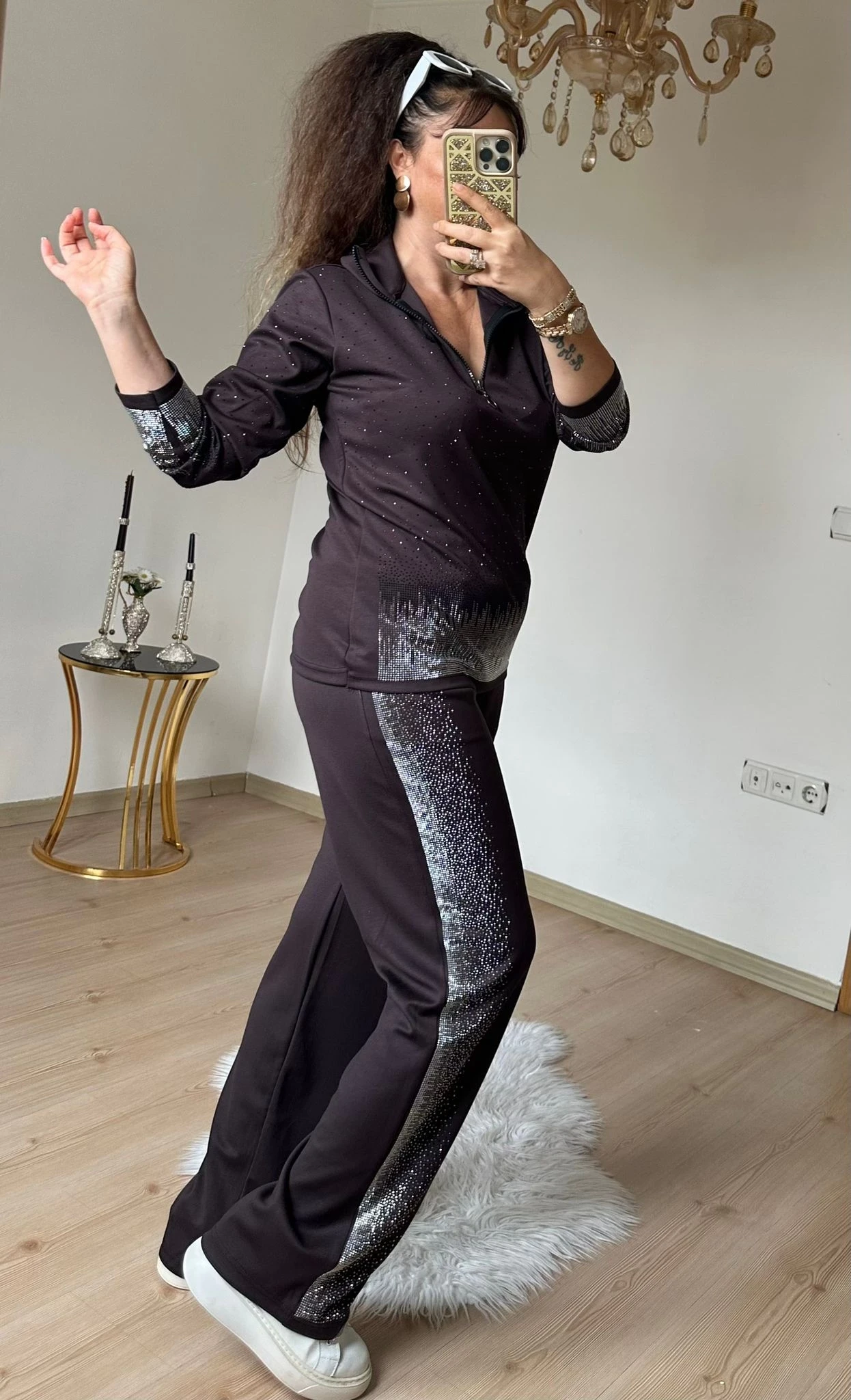 Uzun Kol Yan Çıtçıtlı Siyah Takım