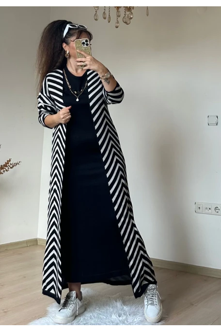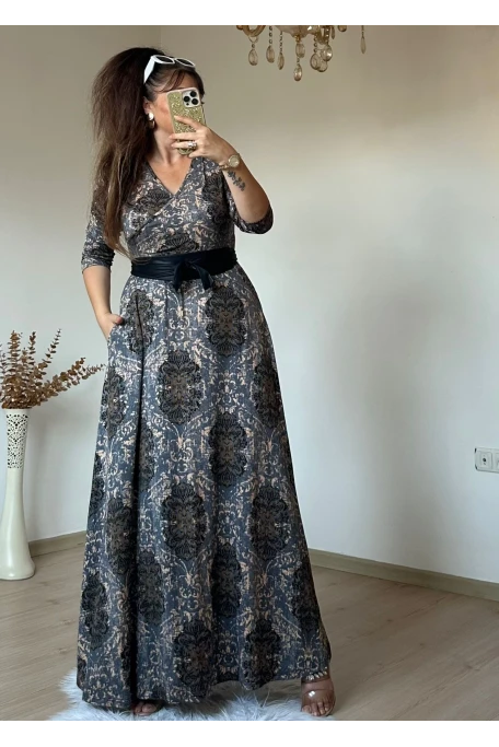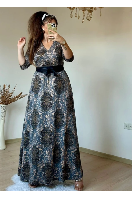 Likralı Vıskon penye kumaş Rahat kalıp 140 cm Uzunkol Kemer dahil Tam boy