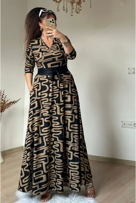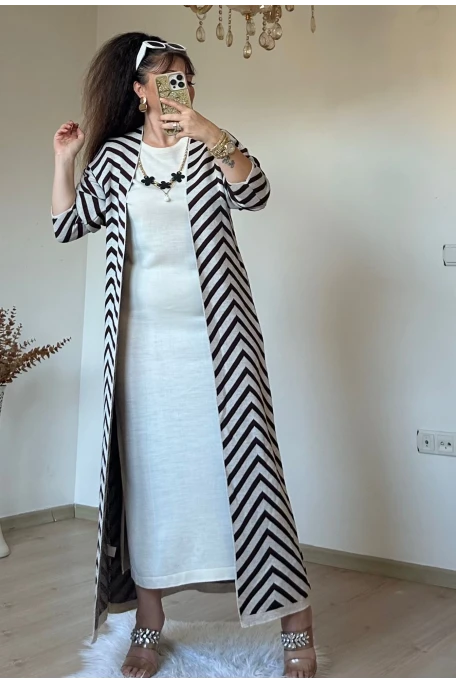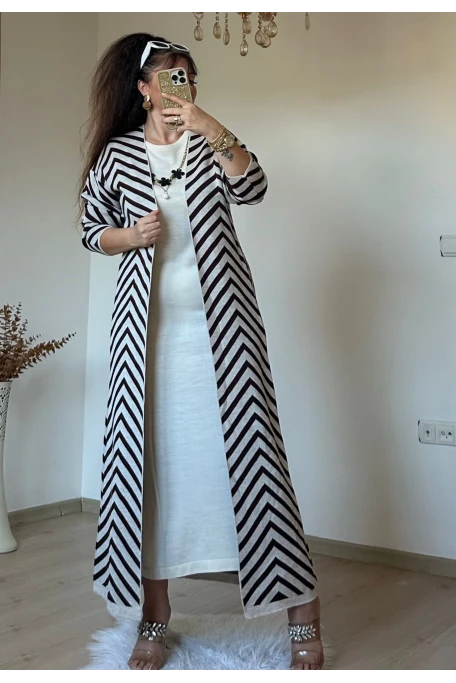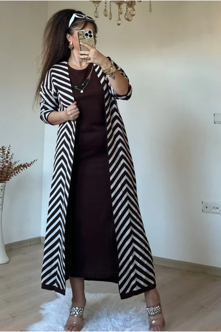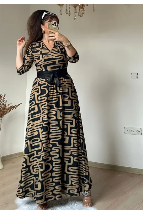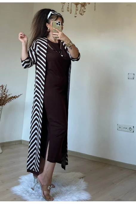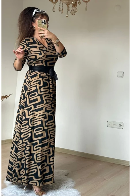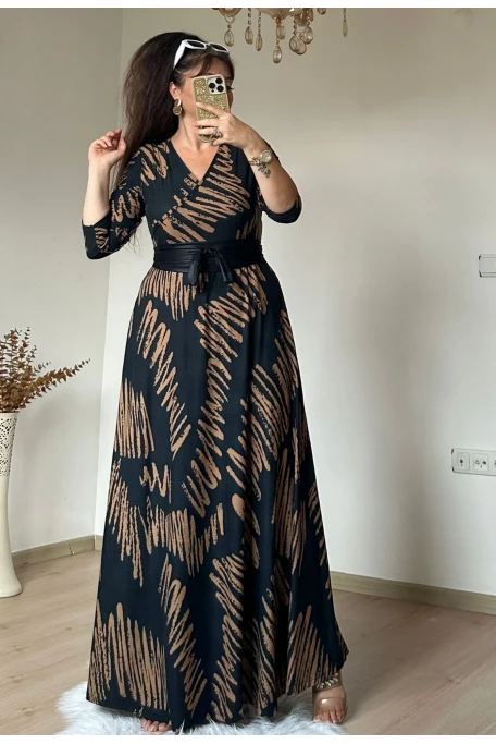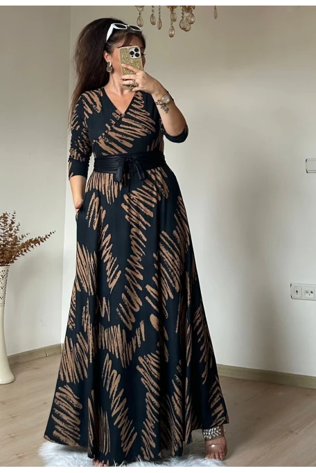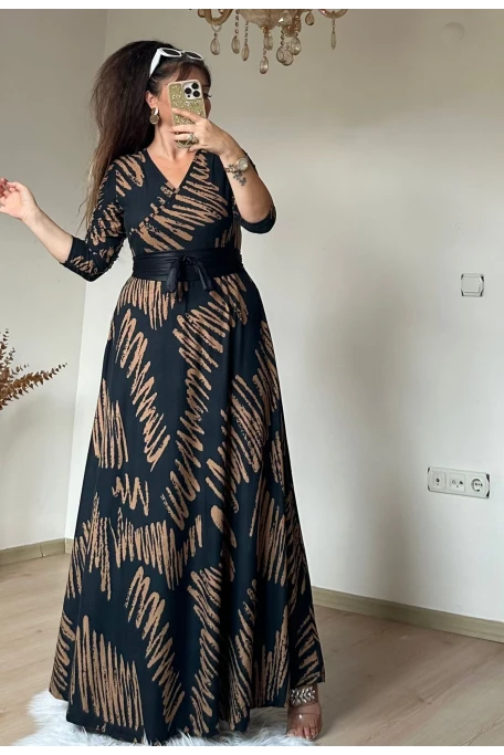 Tam boy Süet Kahve Zikzak Desen Elbise