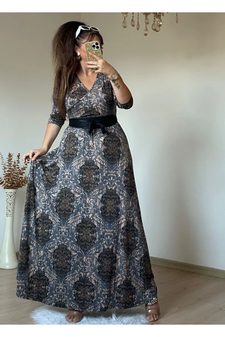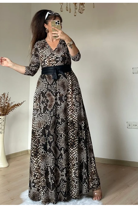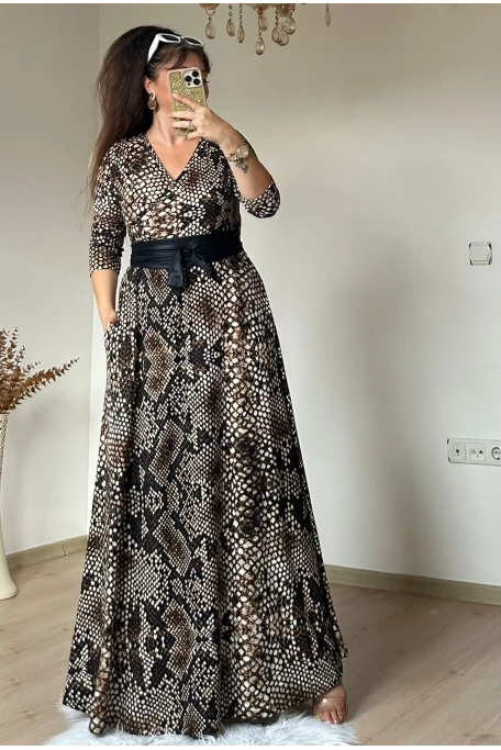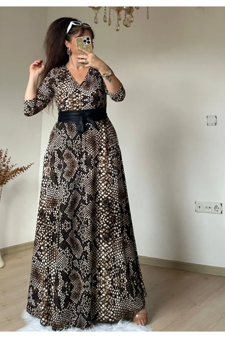 Tam boy Süet Yılan Derisi Desen Elbise