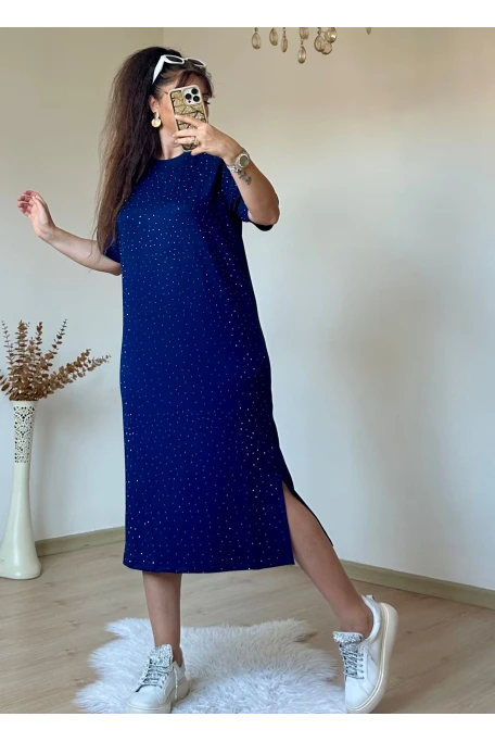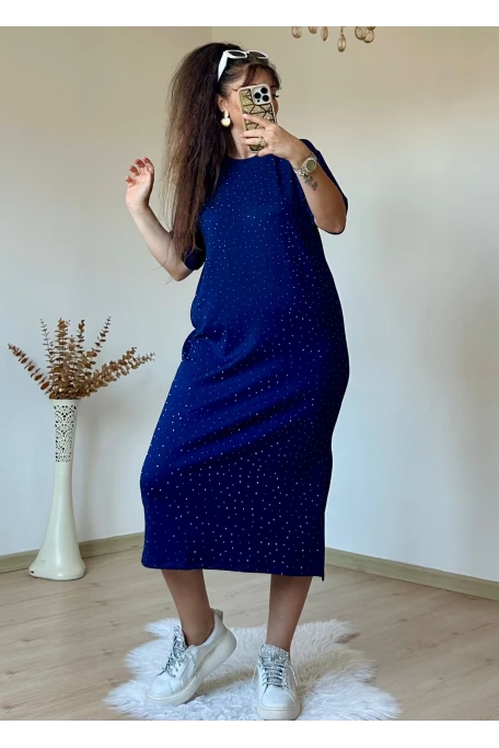Taşlı Elbise Lacivert