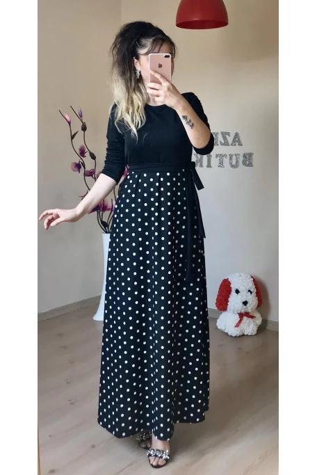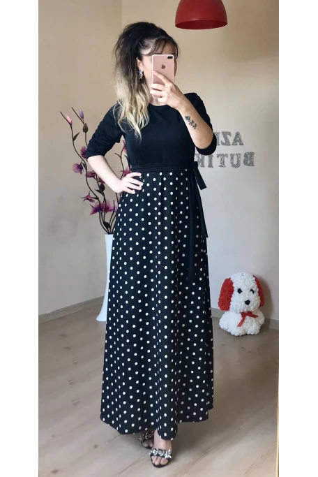 Üst Siyah Alt Puanlı Maxi Boy Penye Elbise