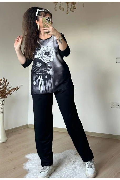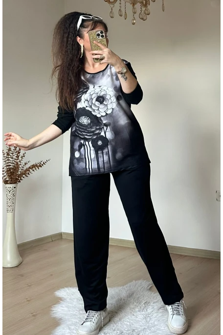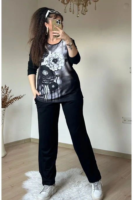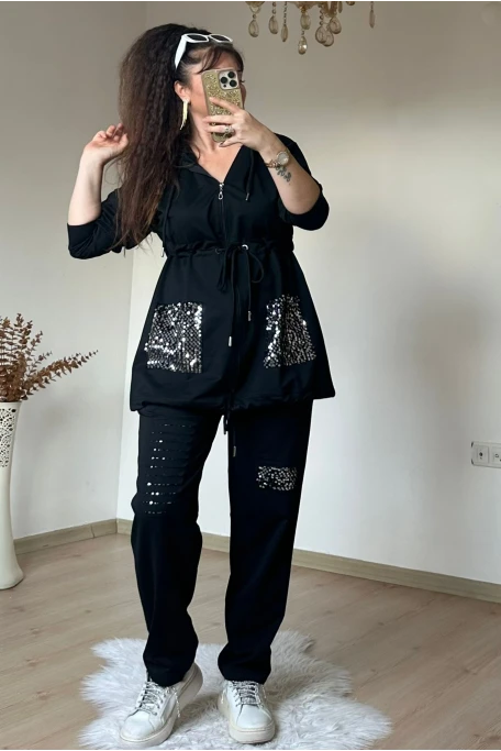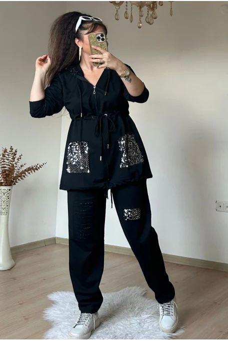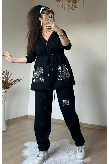 Kapuşonlu Pul Payetlı Takım Sıyah