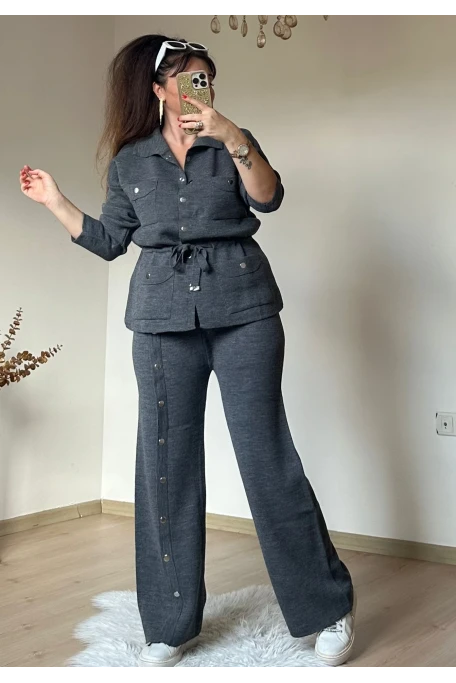 Cıtcılı Sıfır Kol Yelek Takım Grı