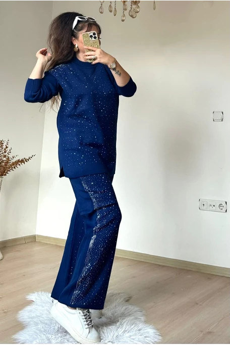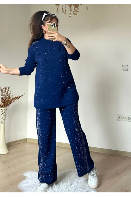 Yan Taşlı Trıko Takım Lacivert
