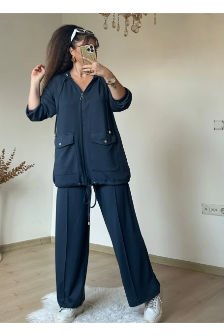 Fermuarlı Pul Payetli Takım Siyah