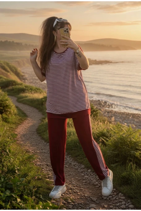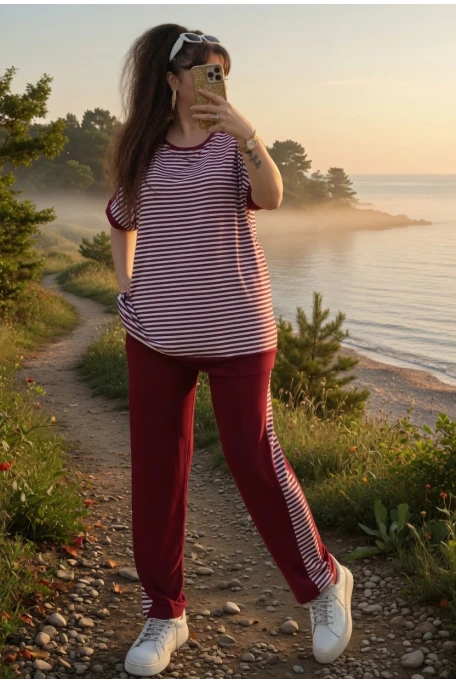Bisiklet Yaka Çizgili Takım Bordo