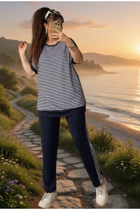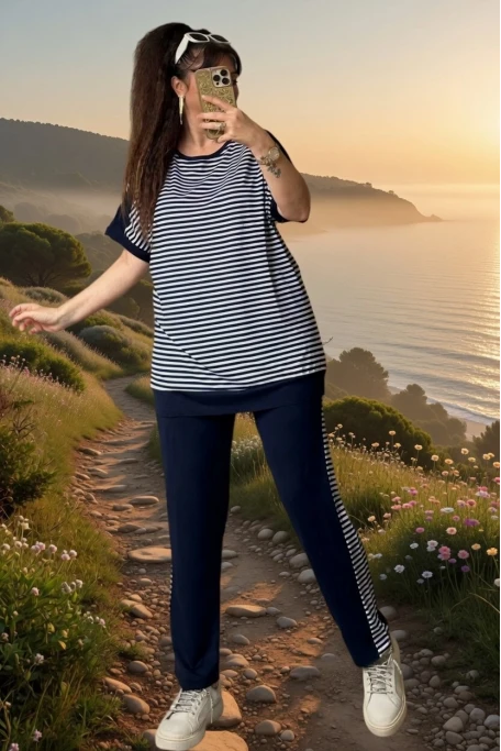Bisiklet Yaka Çizgili Takım Lacivert