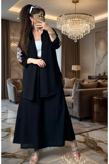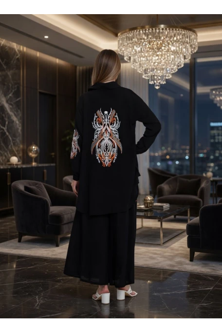 Kol Bağcıklı Gold Sımlı Siyah Takım