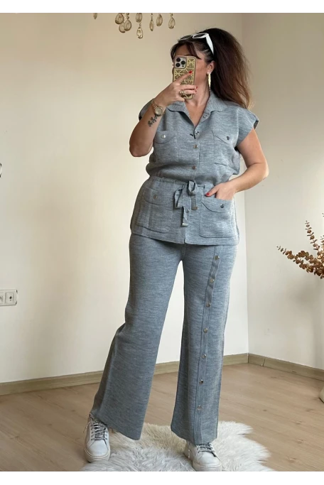 Cıtcılı Sıfır Kol Yelek Takım Grı