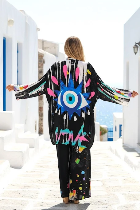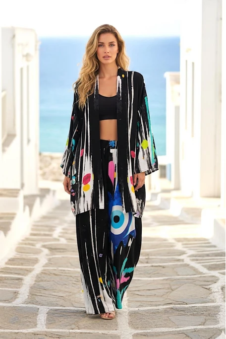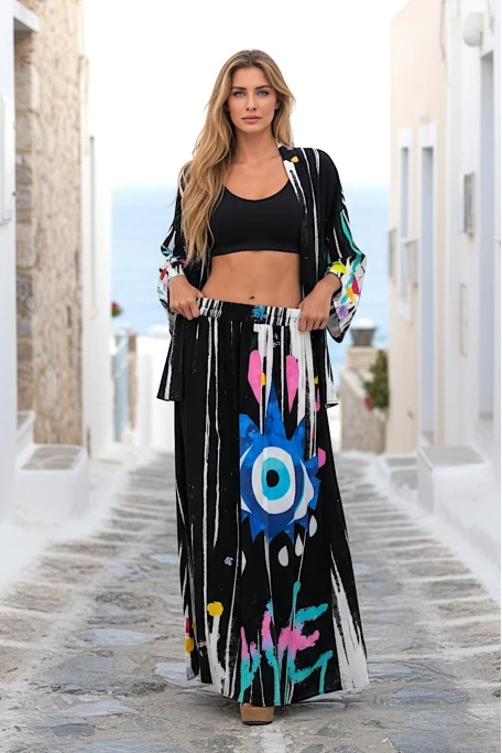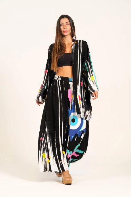 Göz Desenli Cepli Bol Tunik Pantolon İkili Takım