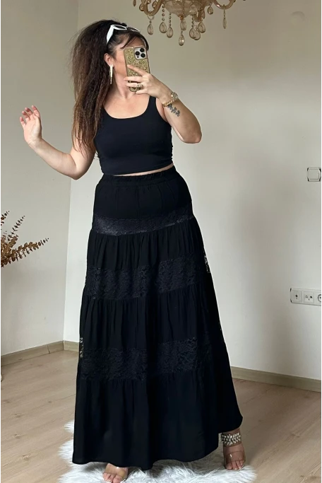 Flok Baskı Etek Sıyah