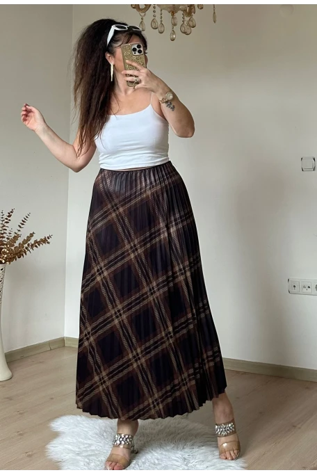 Kemerli Ekose Etek Kahve