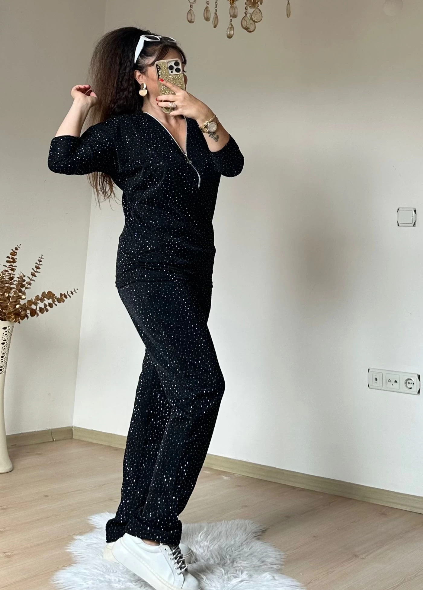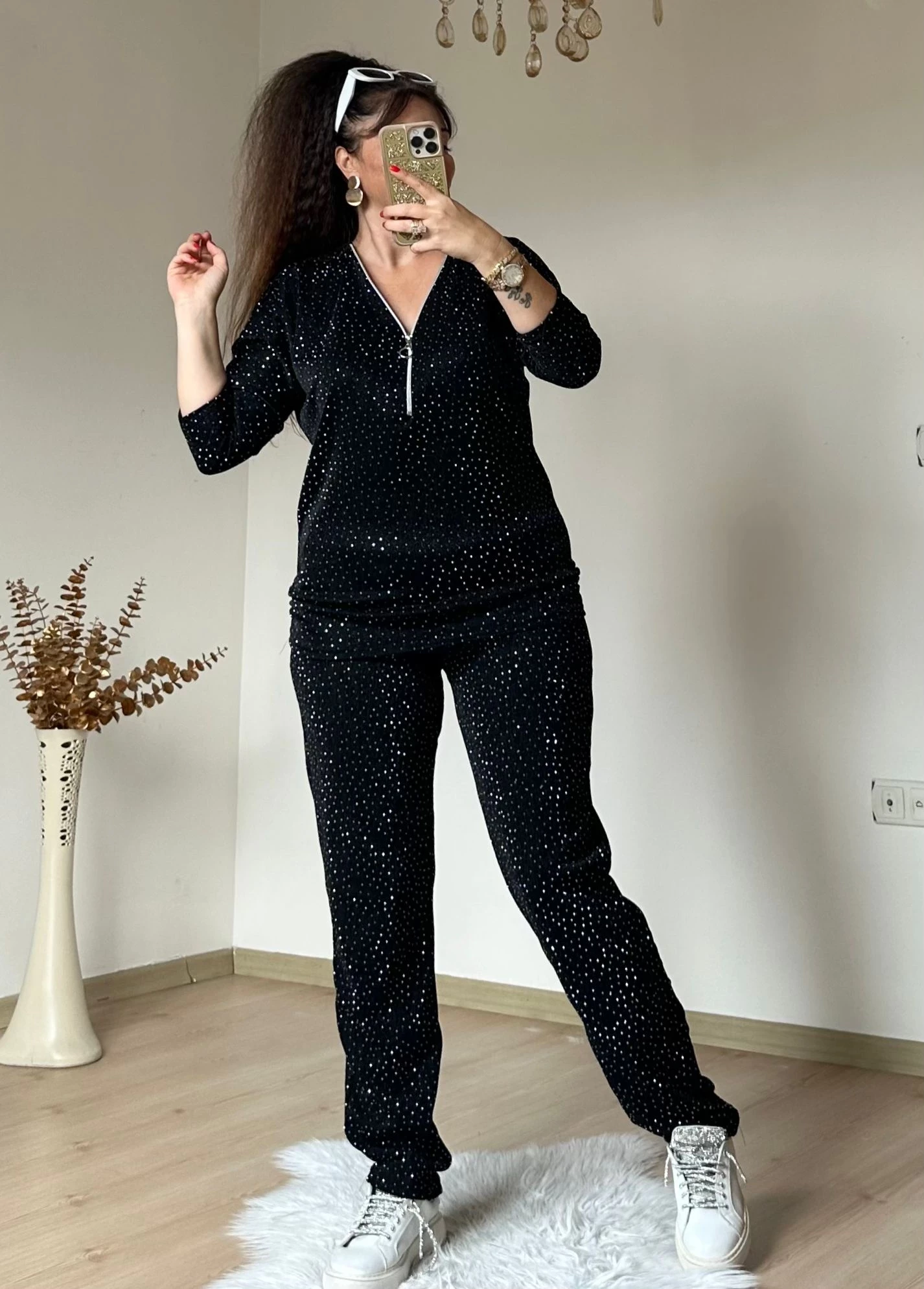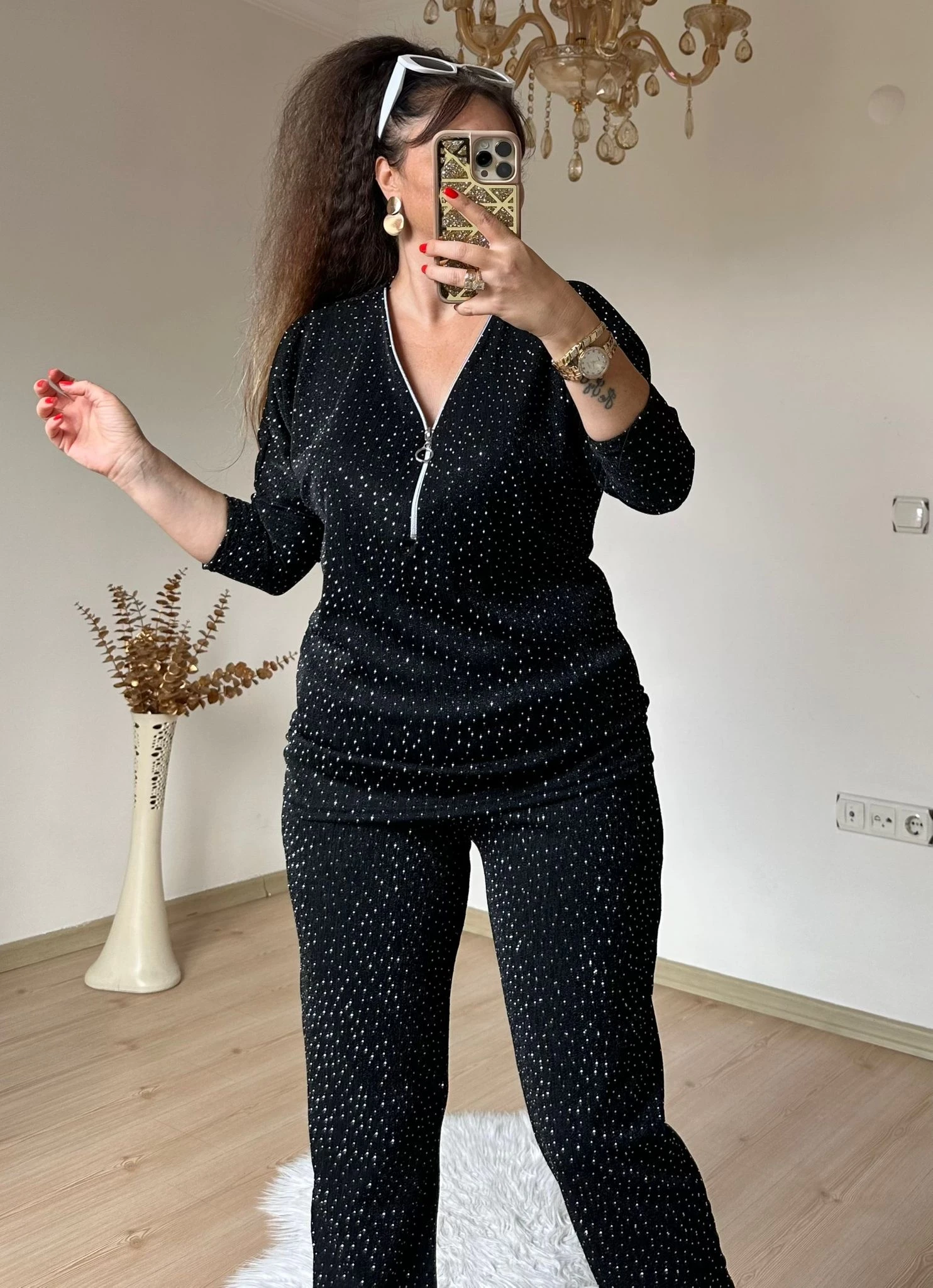 Işıltılı Gömlek Takım siyah
