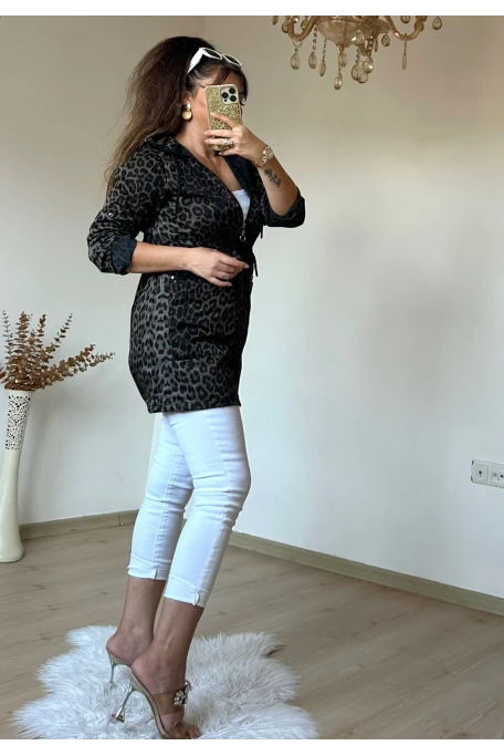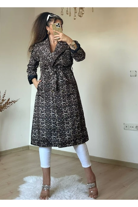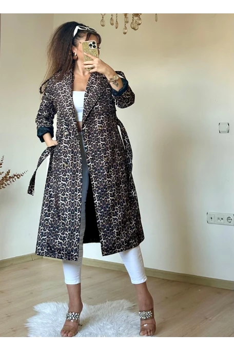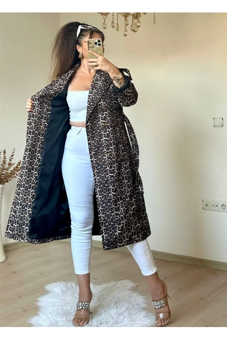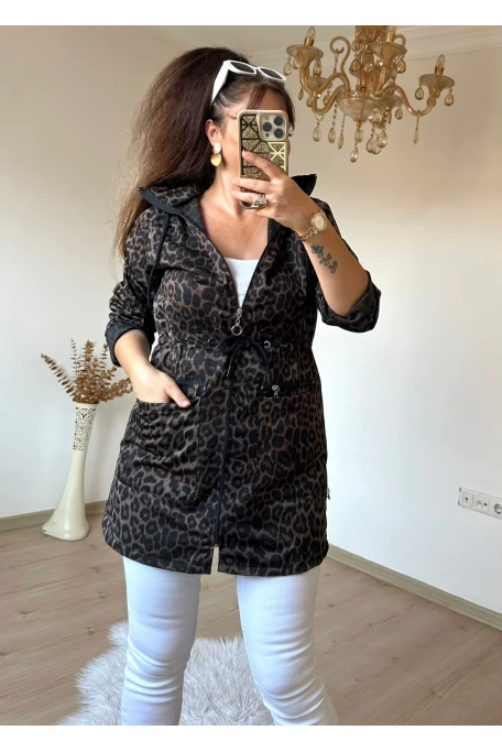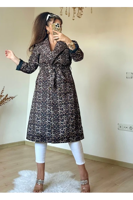 Ceket Yaka Leopar Trençkot Büyük Beden