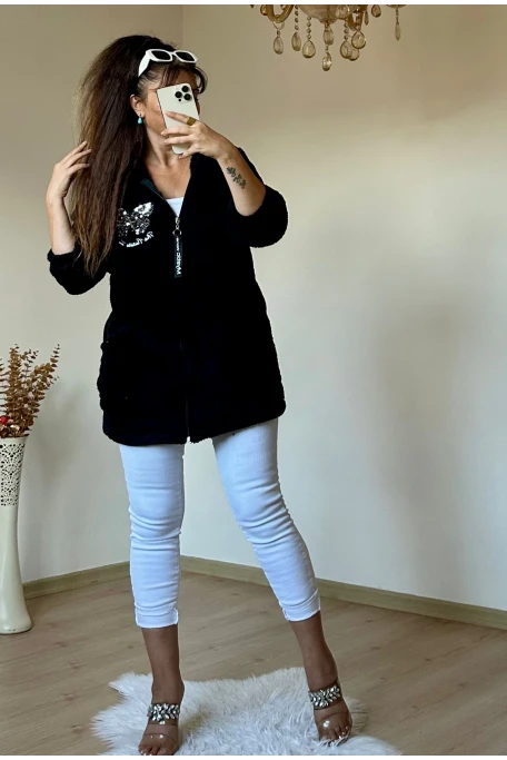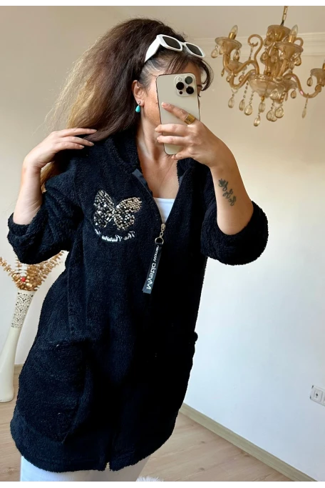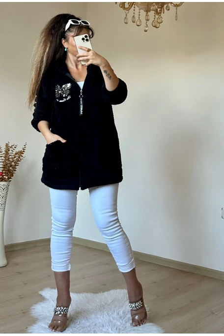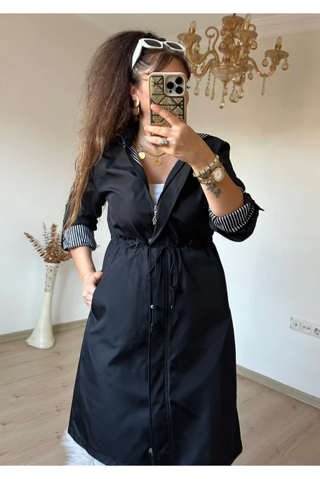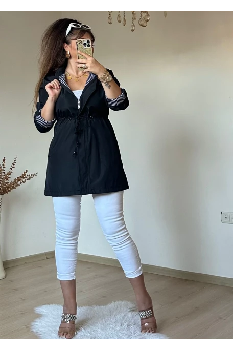 Cep Detay Büzgülü Kapitone Siyah Yelek