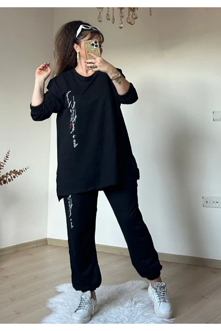 Ön Yazılı Takım Sıyah Büyük Beden