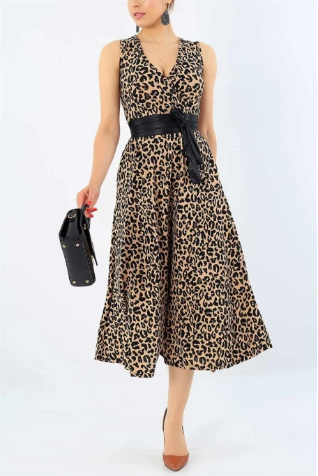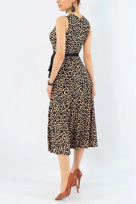 Sıfır Kol Leopar Krep Elbise