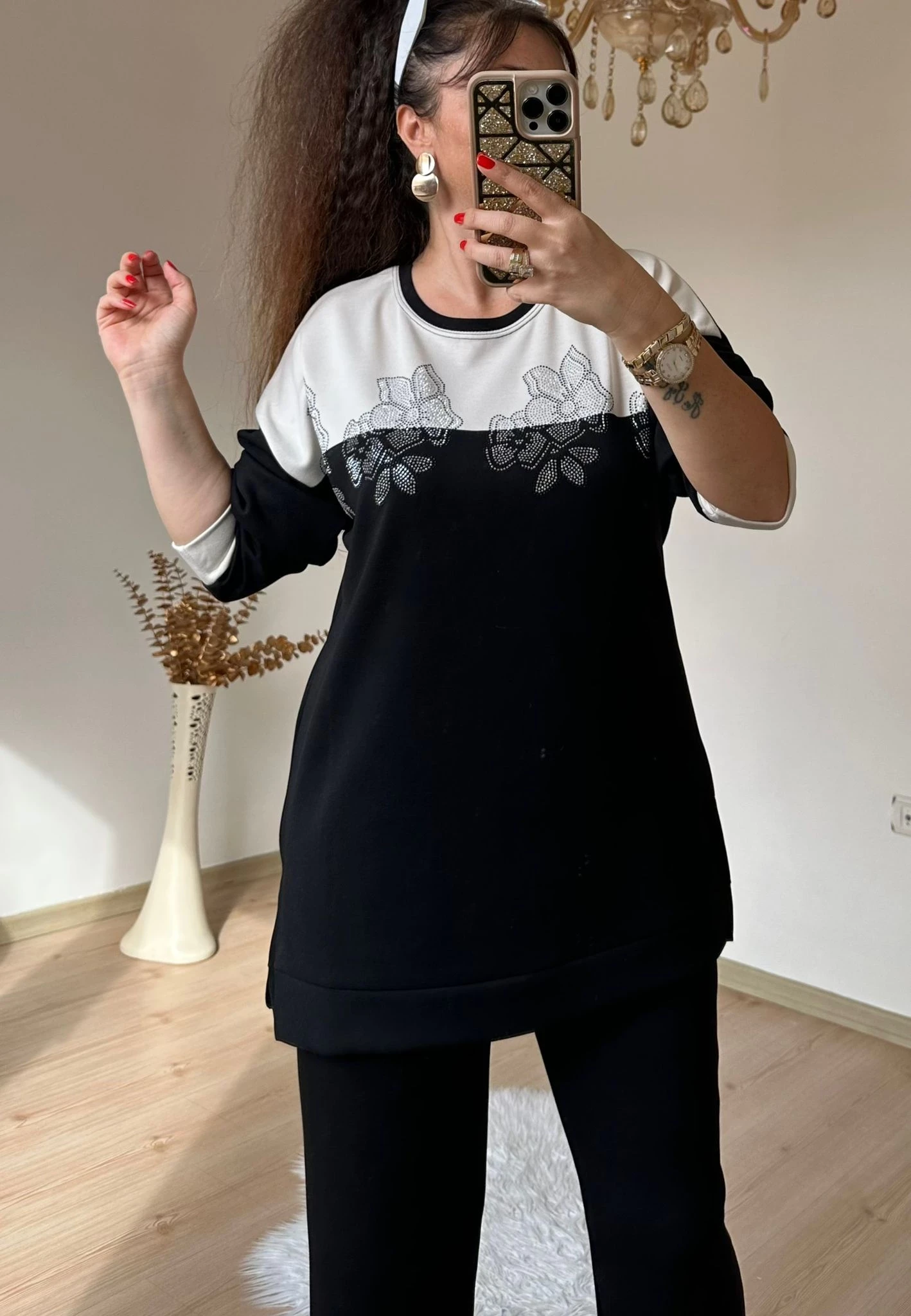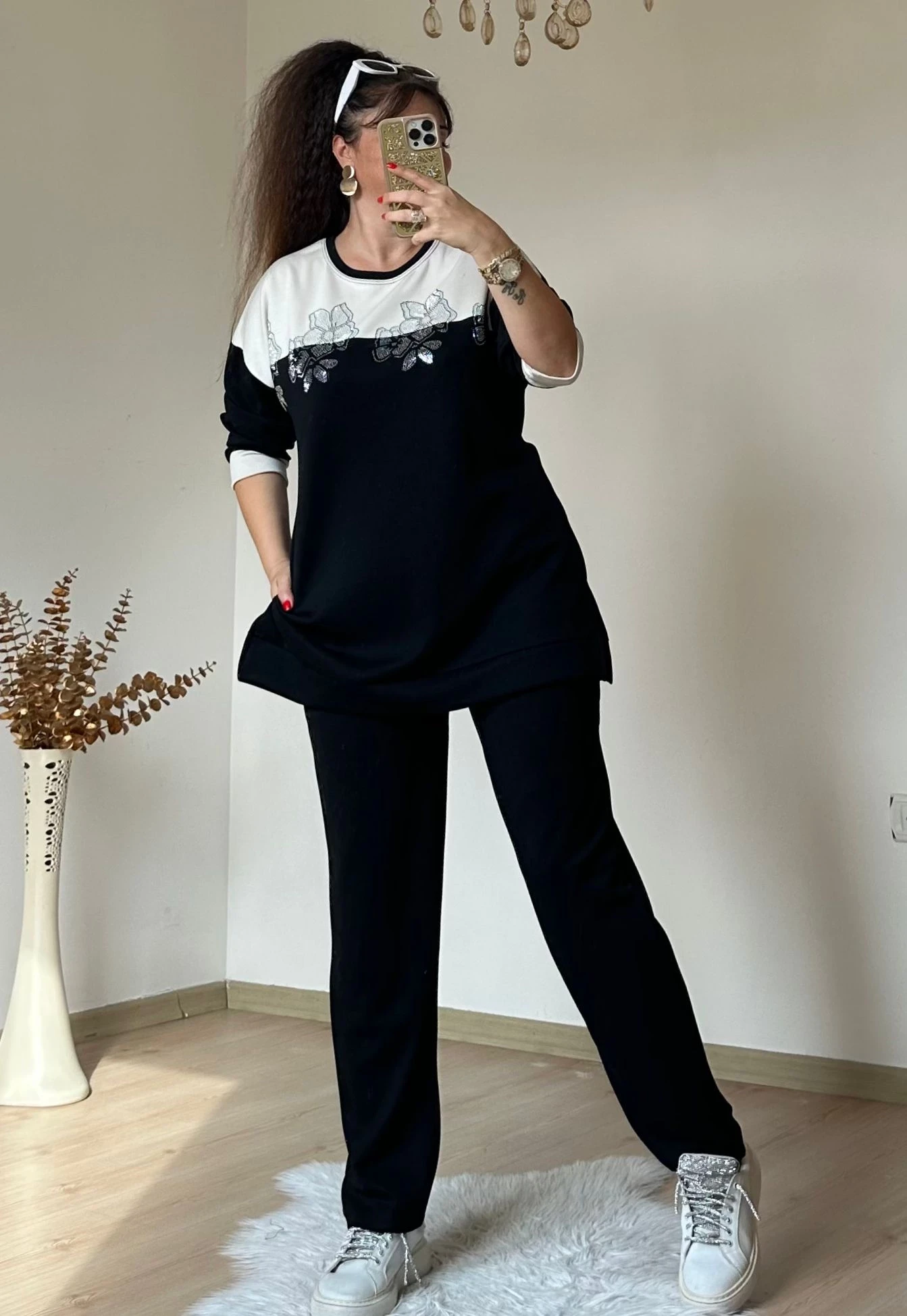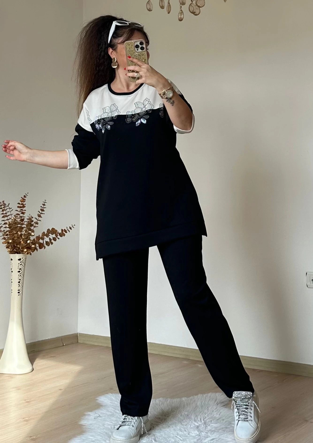 Yaka Taşlı Paça Detaylı Takım Siyah
