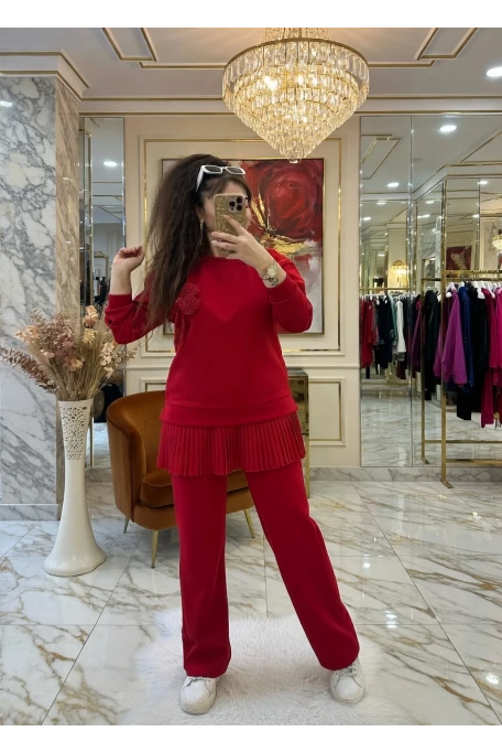 Eteği Pileli Çiçek Takım Kırmızı