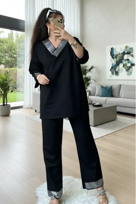 Varak Nakışlı Takım Siyah
