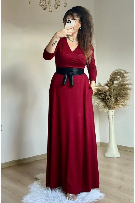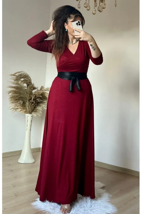 https://www.azrabutik.com/tam-boy-kemerli-duz-elbise-bordo