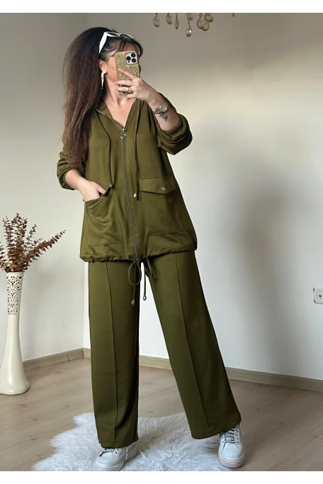 Dik Yaka Fermuarlı Yelekli Takım Kahve