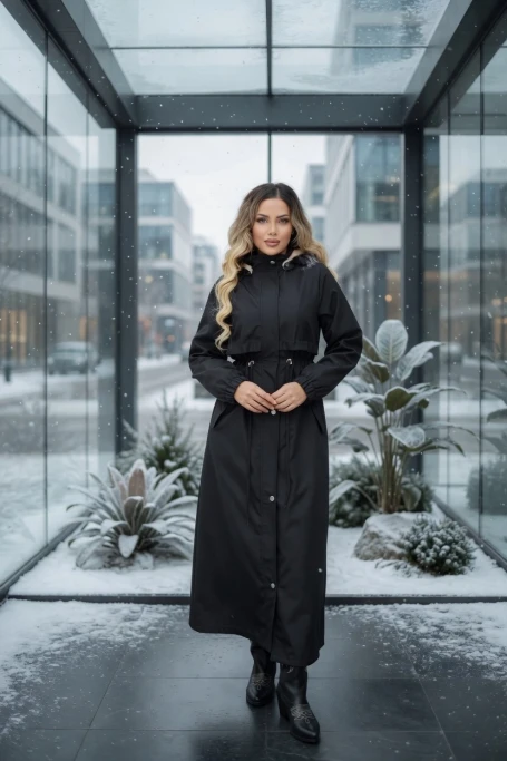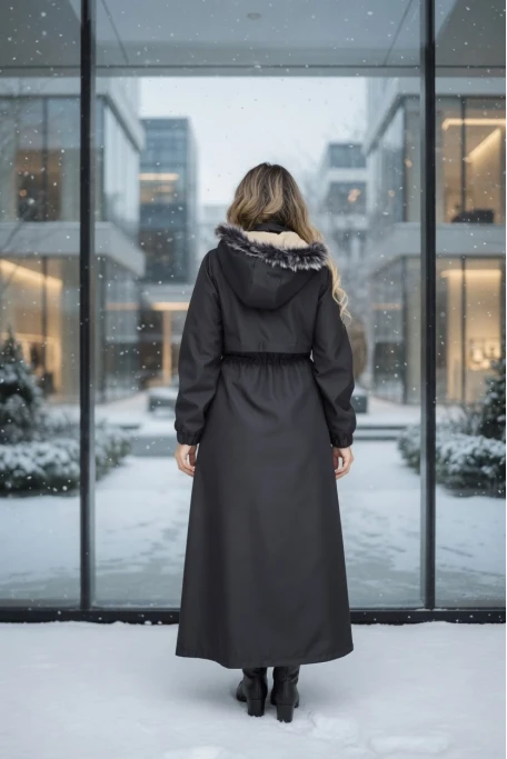 İçi Kürklü Kaban Siyah