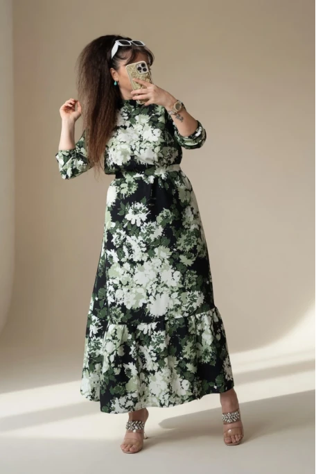 Balıkçı Yaka Yeşil Çıceklı Elbise