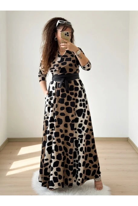 Deri Kemerli leopar Süet Elbise