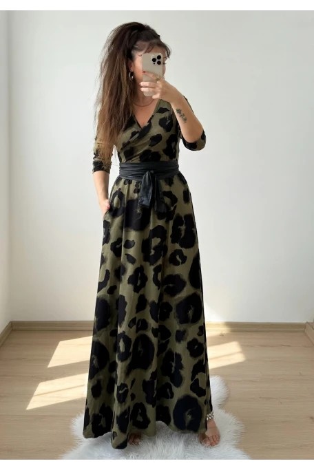 Kare Taka Eteği Fırfırlı Elbise Kahve