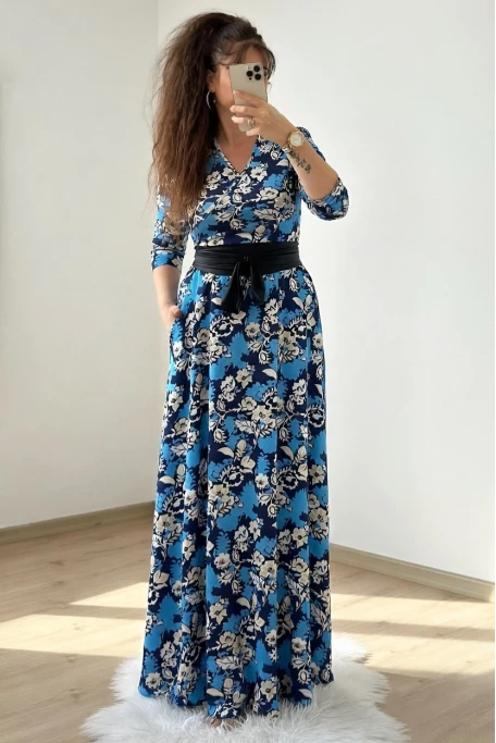 Tam Boy Mavi Çiçek Elbise