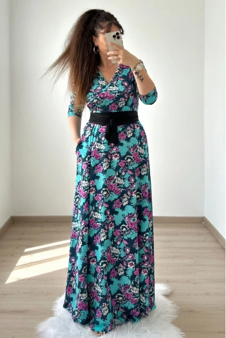 Tam Boy Yeşil Çiçek Elbise