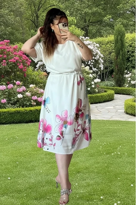 Eteği Çiçekli Beyaz Elbise